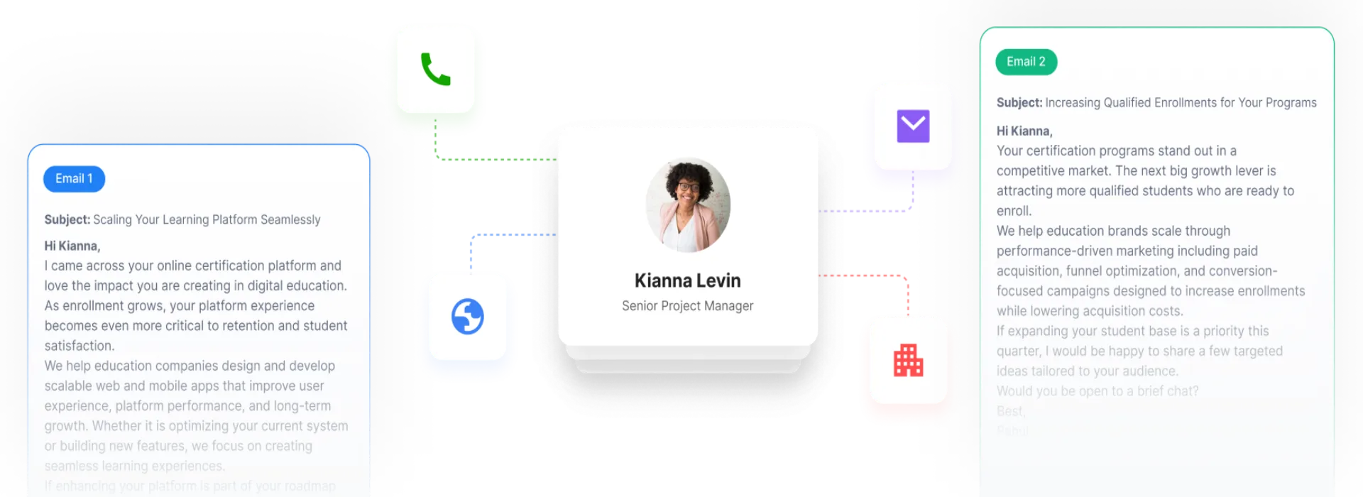 The AI uses a combination of company data, role-specific insights, and publicly available signals to craft personalized messages. This ensures relevance without relying on generic templates.